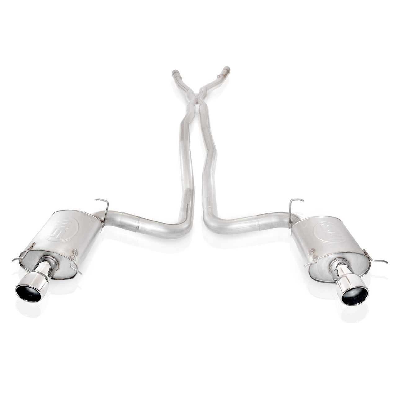 2004-07 Stainless Works, Cadillac CTS-V performance 304 stainless steel exhaust system with X-pipe for use with Stainless Works Headers. 3" CNC Mandrel bent exhaust and high flow metal matrix catalytic converters. Slip joint connectors ensure leak proof seal, dual turbo mufflers deliver maximum performance and deep aggressive sound. 4" polished slash cut rolled edge tips included. When used with Stainless Works headers and a cold air intake, gains of up to 50 RWHP are attainable.