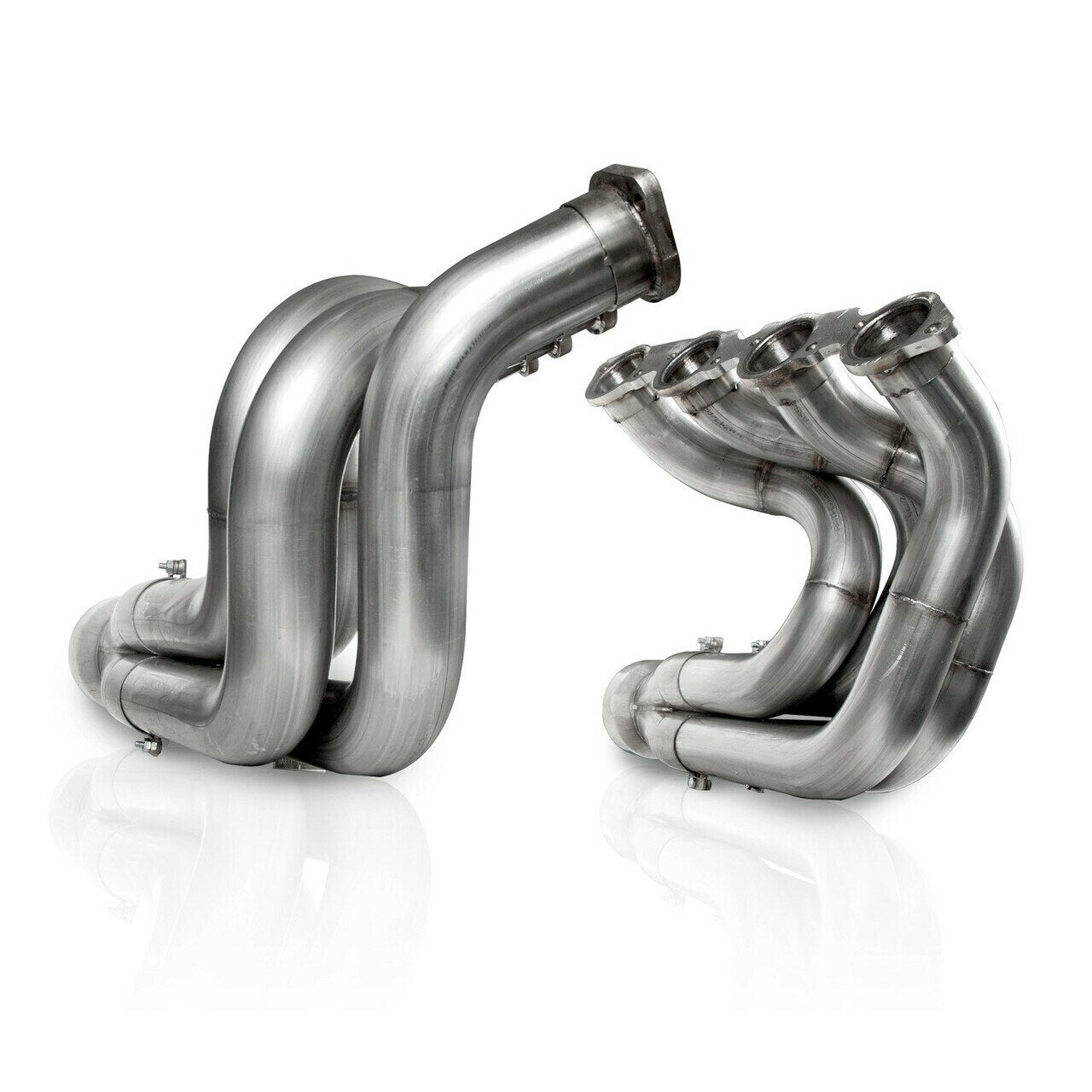 Chevy Down swept dragster/ chassis car header for Big Block with conventional heads. All tubes are CNC mandrel bent for optimal flow. Made from 304 stainless steel for maximum corrosion resistance. Starting with a CNC cut 3/8" thick flanges into 2-1/2" diameter primaries, Flow into 5'' slip on merge style collectors. Headers are fully TIG welded and back purged. Mill finish, These, are TIG welded for strength and durability. These kits come with a lifetime warranty and proudly made in the USA.